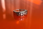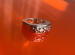Chevalière rectangulaire décorée de fleurs texturées fait en argent sterling.