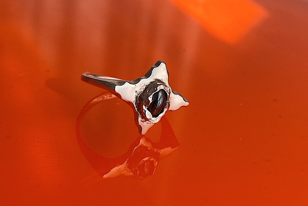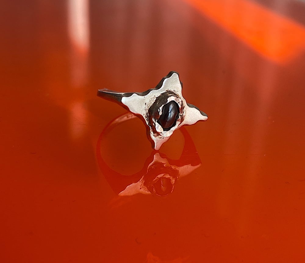Bague étoilée fait en argent sterling sertie d’une hématite.