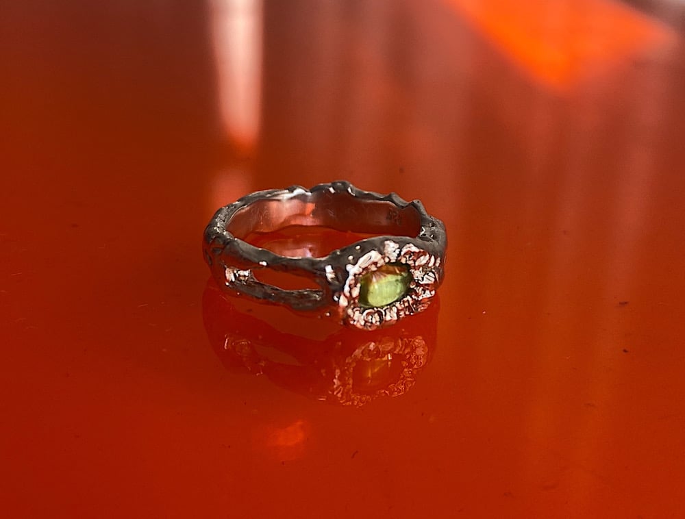 Bague organique fait en argent sterling sertie d’un peridot.